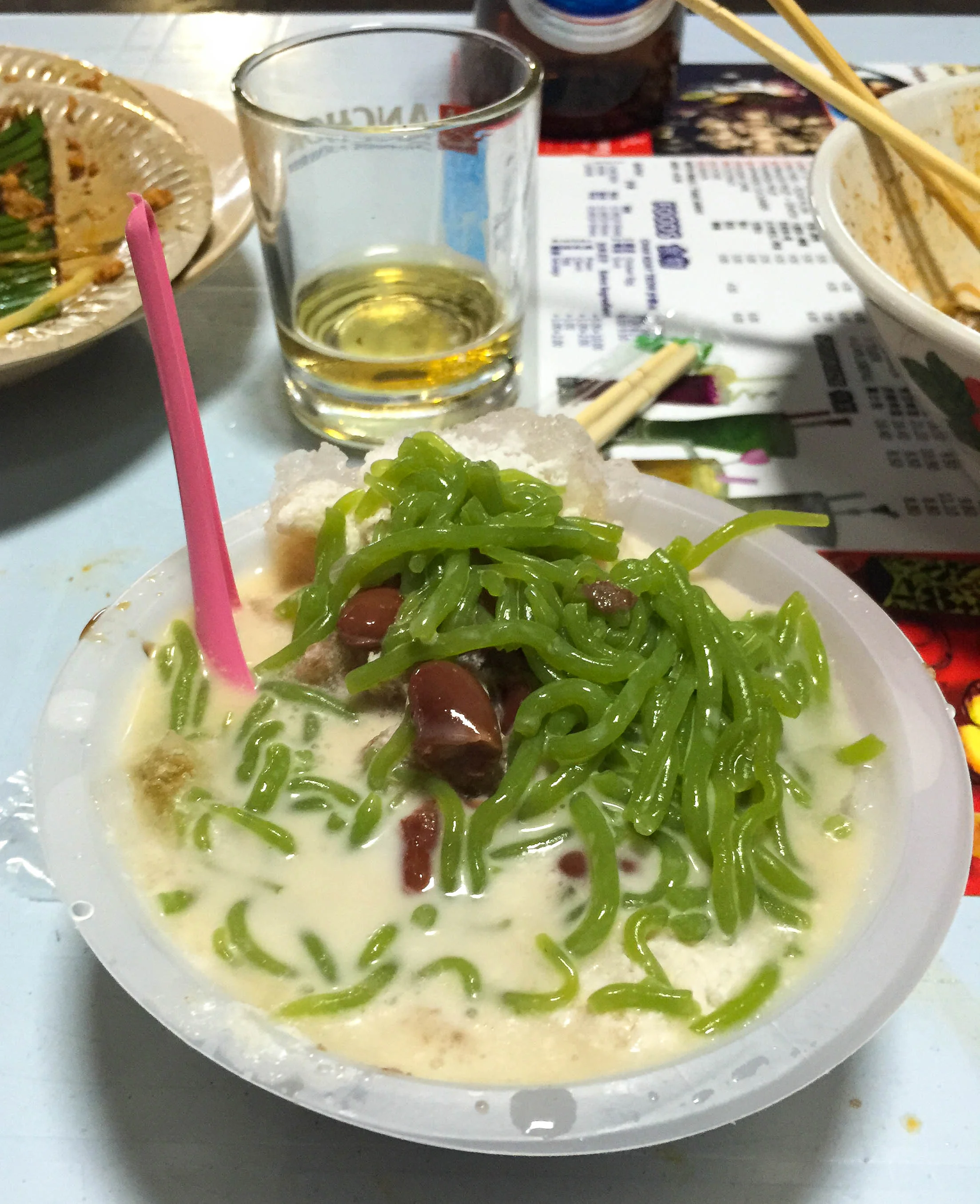 We all know looks can be deceiving. I know what you're thinking, "a cold green noodle, red bean dessert sounds disgusting." Yet, this is one of the most delicious things I have ever had in my life. Made from only five ingredients: shaved ice, a "splash" of condensed milk (mmhmm), coconut palm sugar, weird chewy noodles made of coconut milk and red beans. Don't be afraid -- be brave.